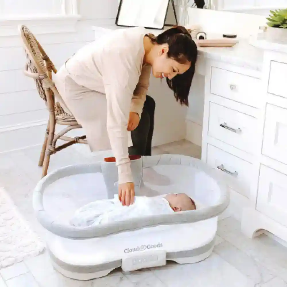 Rent the cloud of goods bassinet for your baby's nap time! This portable bed is perfect for newborns, with soft padding and sturdy sides for safety. It's easy to assemble and disassemble, making it ideal for travel or use at home. Give your little one a comfy place to sleep wherever you go!
