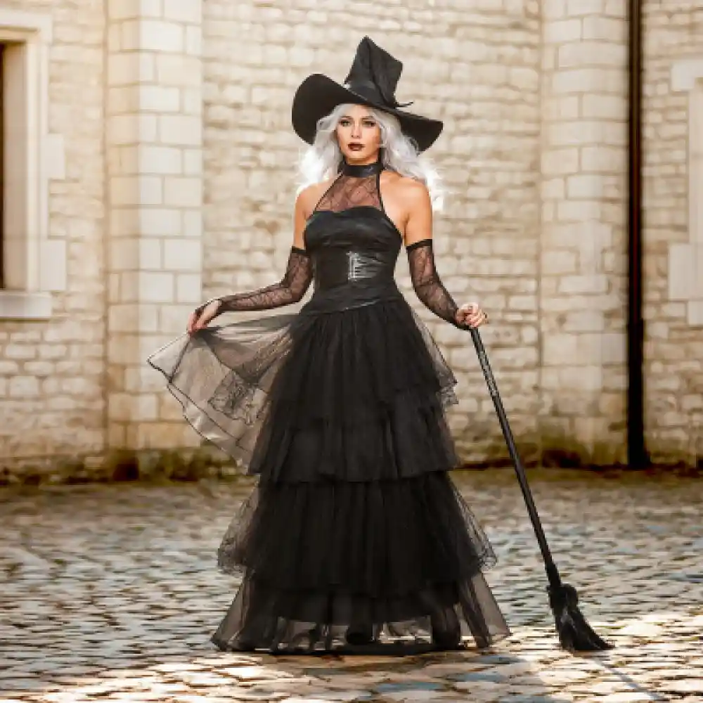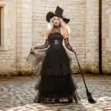 Unleash your magical side this Halloween with the Ember Witch Costume, now available for rent from CloudOfGoods. A hauntingly beautiful ensemble that blends fiery mystique and witchy charm, perfect for any Halloween gathering, party, or trick-or-treat adventure.
