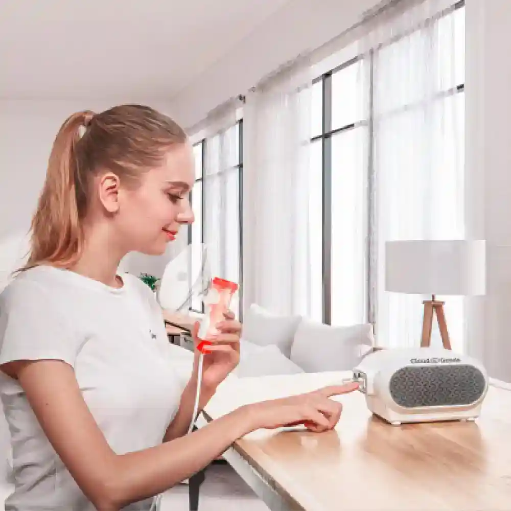 The Cloud of Goods Portable Nebulizer Rental is designed to handle all your nebulising needs. The nebulizer creates a fine mist for quick dispersion of the air, perfect to ease the users breathing quickly.