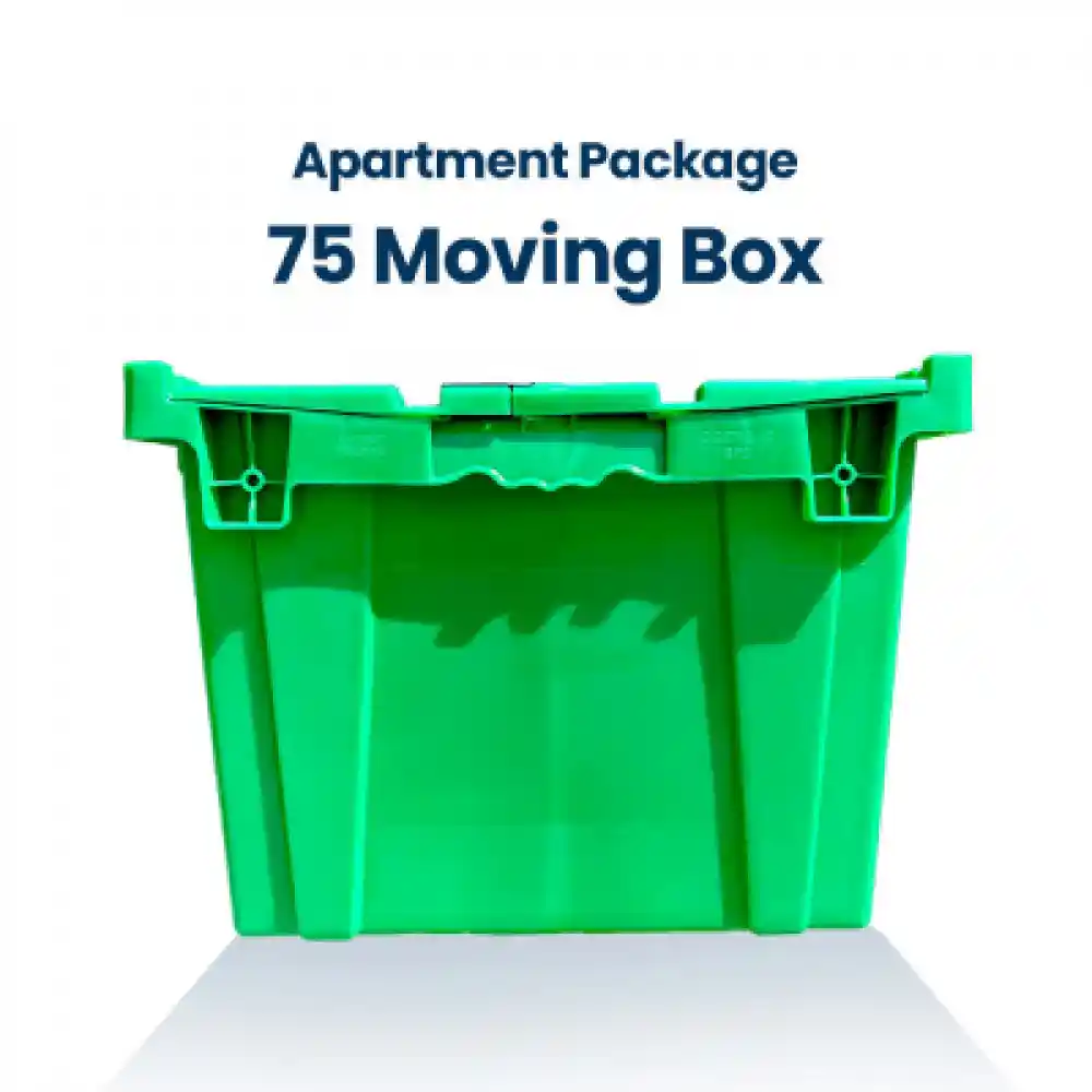 75 Moving Boxes: Durable, standard-sized boxes (27" L x 17" W x 12" H) designed to hold a variety of household items.