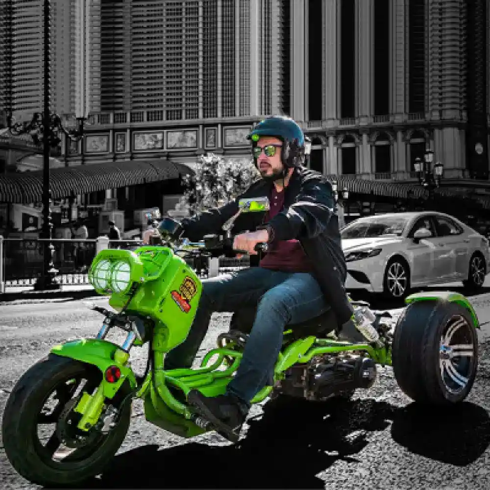 The MadDog trike rental is the beginning of an exciting journey through beautiful cities. The IceBear MadDog Trike is a huge hit with fans all around the globe. This tricycle is completely legal on public roads in 49 states. In contrast to the 50cc, which has a maximum speed of 30-40 mph, the 150cc engine has a 50-60 mph top speed.